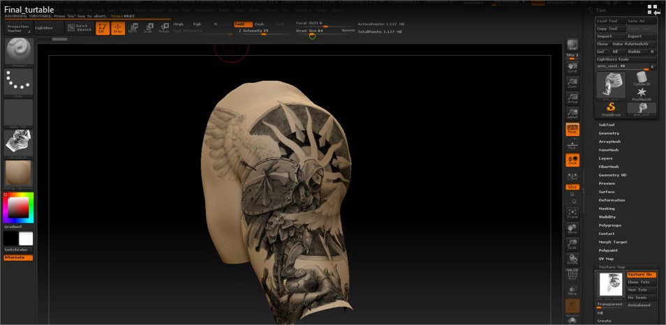 In 2019 I was commissioned by an old friend to design his upper sleeve tattoo. What an honor! This project went from conception to final line art traditional drawing. Then I did some 3D renders to preview to the client how it would appear on his arm and shoulder.